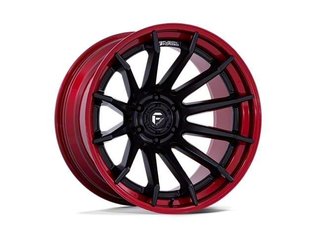 Fuel Wheels Burn Matte Black with Candy Red Lip 6-Lug Wheel; 20x9; 1mm Offset has a unique aesthetic appeal, combining a rugged finish with a sleek design. This striking design enhances the visual impact of any vehicle, making it a standout on the road. Perfect for those seeking a balance of toughness and style.