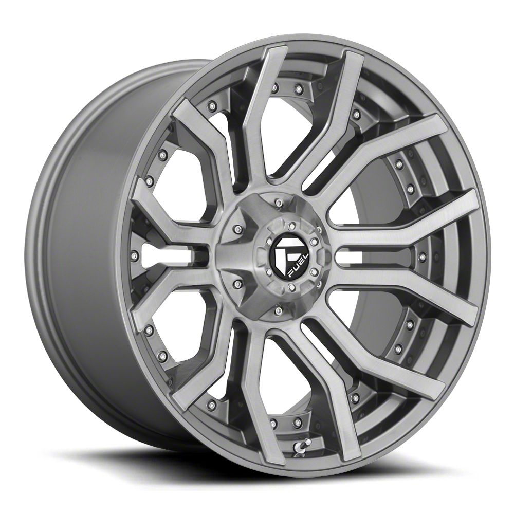 Fuel Wheels Rage Platinum Brushed Gunmetal Tinted Clear 6-Lug Wheel; 24x12; -44mm Offset. Enhance your vehicle's look with the Fuel Wheels Rage Platinum Brushed Gunmetal Tinted Clear 6-Lug Wheel. This premium wheel adds a touch of elegance and class to your vehicle, complementing its sophisticated aesthetic.