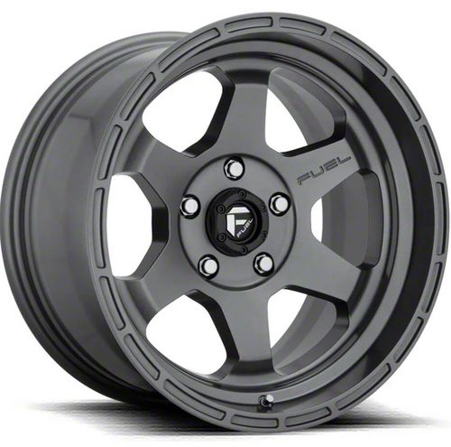 The 17x10 Fuel Wheels Shok Textured Anthracite 6-Lug Wheel is completed in a high-quality anthracite finish, which looks great. Thanks to a durable clear coat, the finish also protects against the rigors of driving.