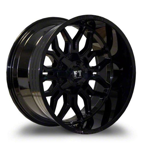 This 20x10 Full Throttle Off Road FT9 Gloss Black 8-Lug Wheel is completed in a high-quality gloss black finish that will be the envy of everyone. There's a durable clear coat that protects against driving hazards.
