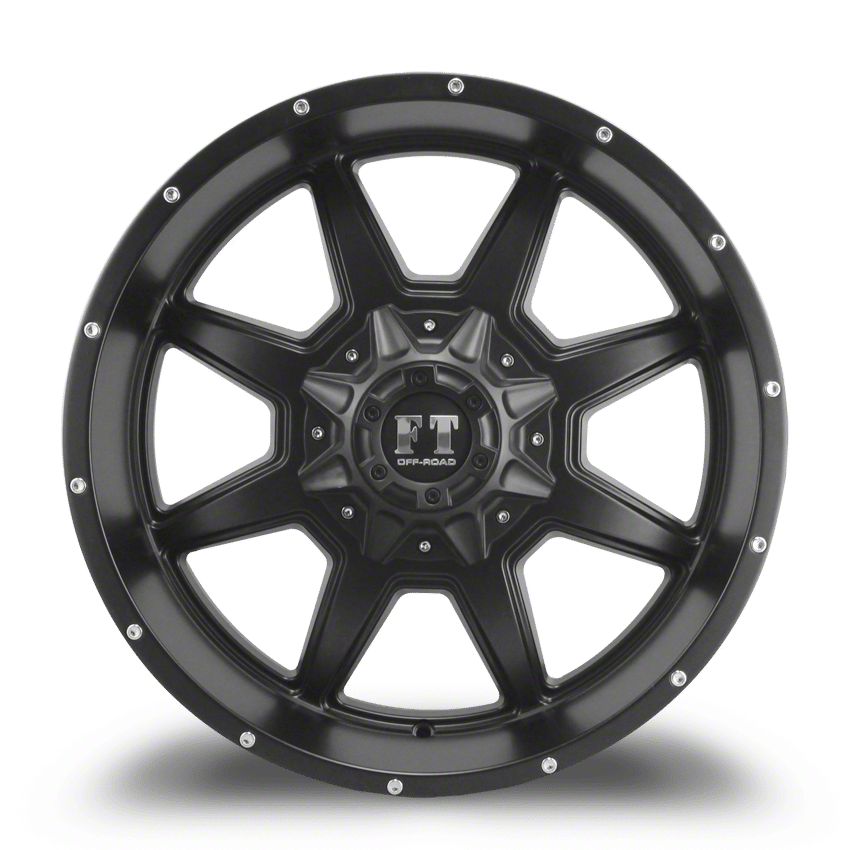 Full Throttle Off Road FT2 Satin Black 8-Lug Wheel; 20x10; -24mm Offset This Full Throttle Off Road FT2 Satin Black 8-Lug Wheel; 20x10; -24mm Offset brings a sleek and modern touch to your vehicle with its striking design. Its refined finish and bold styling make it an excellent choice for those looking to enhance their car’s visual appeal. Whether you're aiming for a sporty look or a more aggressive stance, this wheel stands out as a premium addition. Perfect for drivers who appreciate a stylish upgrade.
