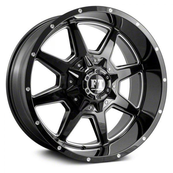 The 20x10 Full Throttle Off Road FT2 Gloss Black Milled 8-Lug Wheel is completed in a high-quality gloss black finish, with steel milled accents. Thanks to a durable clear coat, the finish looks amazing and also protects against the rigors of driving.
