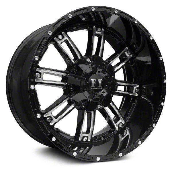 This 20x10 Full Throttle Off Road FT8033 Gloss Black Milled 8-Lug Wheel is completed in a high-quality gloss black finish with steel milled accents that will create a striking appearance. There's a durable clear coat that protects against driving hazards.