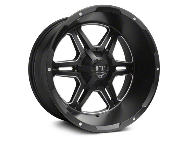 This 20x12 Full Throttle Off Road FT3 Satin Black Milled 6-Lug Wheel is completed in a high-quality satin black finish with steel milled accents to create an impressive appearance. There's a durable clear coat that protects against driving hazards.