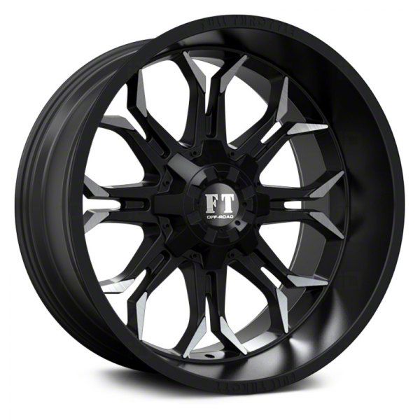The 20x10 Full Throttle Off Road FT10 Gloss Black with Machine Edges 6-Lug Wheel is completed in a high-quality gloss black finish with contrasting accents. There's a durable clear coat that looks amazing and protects the wheel against the rigors of driving.