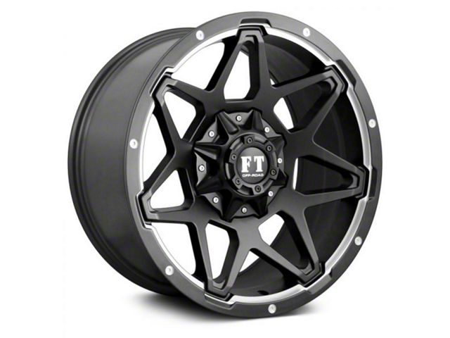 Full Throttle Off Road FT4 Satin Black Machined Undercut 6-Lug Wheel; 20x10; -24mm Offset. The Full Throttle Off Road FT4 Satin Black Machined Undercut 6-Lug Wheel offers a striking balance of style and refinement. Its unique design accentuates the vehicle's aesthetic, while the premium construction underscores its robust nature. This wheel is a perfect choice for those seeking both elegance and a strong visual statement.