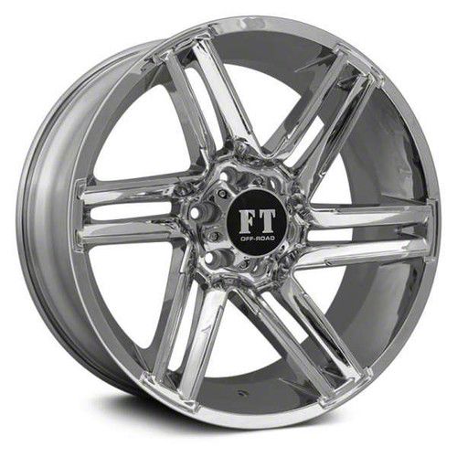 Full Throttle Off Road FT7 Chrome 6-Lug Wheel; 20x9; 0mm Offset. The Full Throttle Off Road FT7 Chrome 6-Lug Wheel offers a striking balance of style and refinement. Its unique design accentuates the vehicle's aesthetic, while the premium construction underscores its robust nature. This wheel is a perfect choice for those seeking both elegance and a strong visual statement.