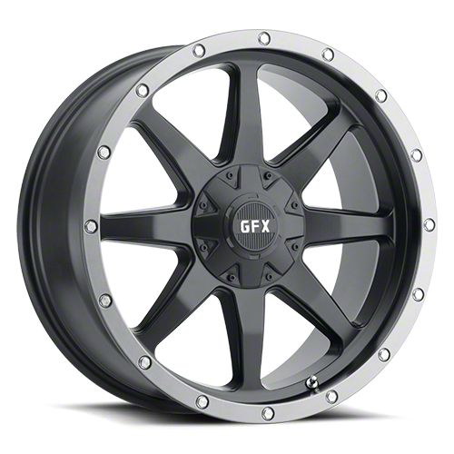 G-FX TR-14 Matte Black with Gray Ring 6-Lug Wheel; 17x8.5; 18mm Offset exudes sophistication with its finish, offering a sleek and modern appeal to any vehicle it adorns. The design is meticulously crafted to enhance the aesthetic of your vehicle, giving it a distinctive and upscale look. Perfect for those seeking to elevate their vehicle's style, this wheel blends seamlessly with both contemporary and classic vehicle designs, making it a versatile choice for a wide range of vehicles. Its robust construction ensures durability, making it a reliable choice for drivers who value both style and quality.