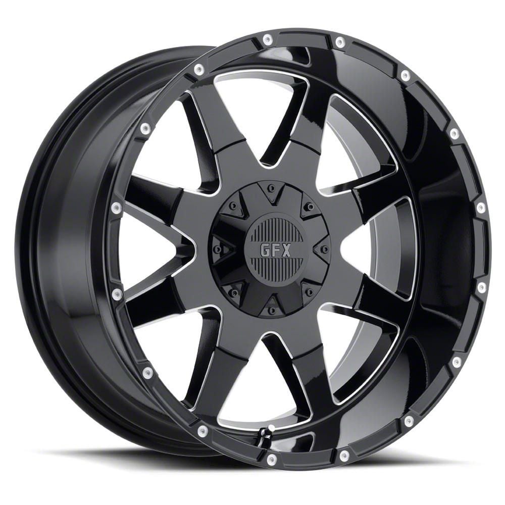 The 20x9 G-FX TR-12 Gloss Black Milled 6-Lug Wheel is completed in a high-quality gloss black finish, with steel milled accents. Thanks to a durable clear coat, the finish looks amazing and also protects against the rigors of driving.