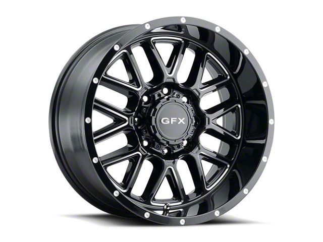 G-FX TM-5 Gloss Black Milled 8-Lug Wheel; 17x8.5; 18mm Offset - This wheel's elegant design will certainly enhance your vehicle's aesthetic, complementing its luxury and performance. The unique styling of this wheel makes it an ideal choice for a standout quality of your ride, reflecting the premium quality associated with the G-FX brand.