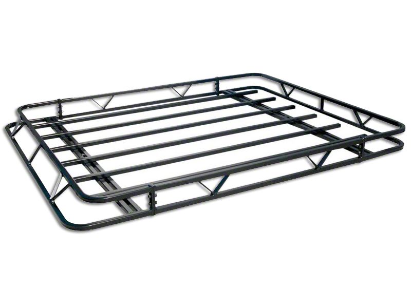 Hardcore Off-Road Rack. The Garvin Sport Series Roof Rack is your ideal solution for the common inconvenience of having too much luggage on your off-road driving adventurers. This rack measures 54 inches wide and 60 inches long with 4-inch tall sides and has a durable steel construction that can withstand luggage of up to 300 lbs in cumulative weight. The tilting feature allows for the possibility of raising it unloaded in order to rearrange the soft top. The fact that it can fit the OE rain gutters of both 2-door and 4-door models is also an added advantage.