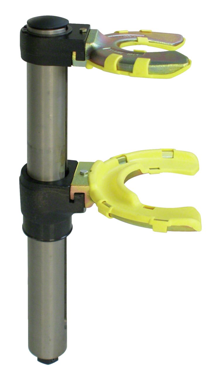 Universal spring compressor with prolonged operating stroke The spring compressor KL-0015 SP, including spring retaining pairs KL-1510 SP size 1N and KL-1520 SP size 2N is suitable for replacing the right-hand coil springs and shock absorbers on passenger car chassis systems. Due to the anti-slip protective inserts, the spring is prevented from turning out and the sensitive spring surface coating from being damaged. Pros: Self-locking of the mobile holder / lifting carriage Released by the trade association Can also be used for conical springs Plastic protective inserts