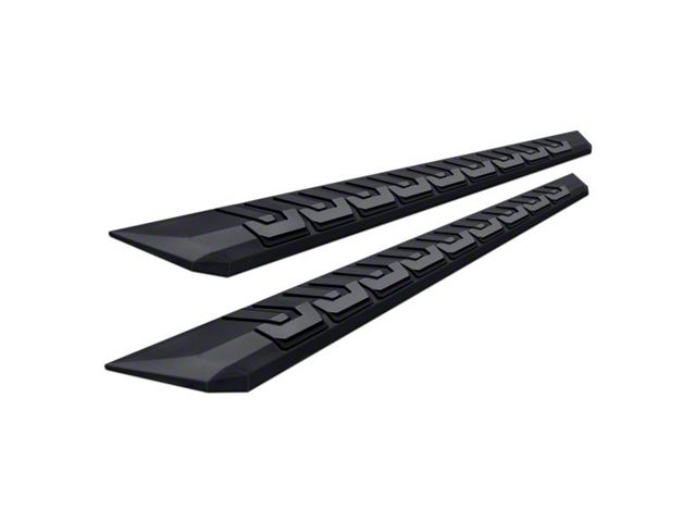 Description. Incredible faceted design, with stealth aerospace inspiration, this unique design running board compliments the styling of today's hard edged trucks and SUV's, and is a look that no-one else can offer. 2.5mm thick MILITARY GRADE ALUMINUM TUBES, with a black powdercoat finish will NEVER RUST, PIT, PEEL, FLAKE OR DULL. The ultimate in long lasting great looks. Extreme corrosion resistance and backed by our LIFETIME WARRANTY. Our black powder coated tubes are coated with a two-stage e-coat then powder coat process, the same as required by the OEM's. Aggressive step pad tread design, is molded from the same UV weathering, impact resistant grade of resin used by the OEM's unlike most aftermarket companies that use a brittle and poor weathering grade of resin.