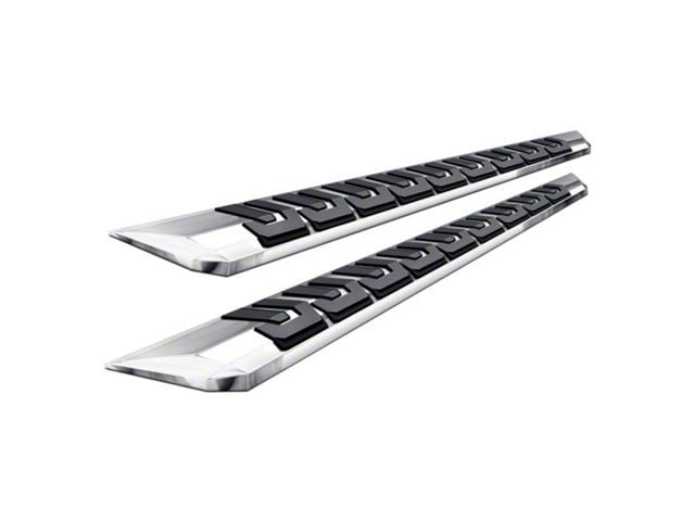 Description. Incredible faceted design, with stealth aerospace inspiration, this unique design running board compliments the styling of today's hard edged trucks and SUV's, and is a look that no-one else can offer. 2.5mm thick MILITARY GRADE ALUMINUM TUBES, with a black powdercoat finish will NEVER RUST, PIT, PEEL, FLAKE OR DULL. The ultimate in long lasting great looks. Extreme corrosion resistance and backed by our LIFETIME WARRANTY. Our black powder coated tubes are coated with a two-stage e-coat then powder coat process, the same as required by the OEM's. Aggressive step pad tread design, is molded from the same UV weathering, impact resistant grade of resin used by the OEM's unlike most aftermarket companies that use a brittle and poor weathering grade of resin.