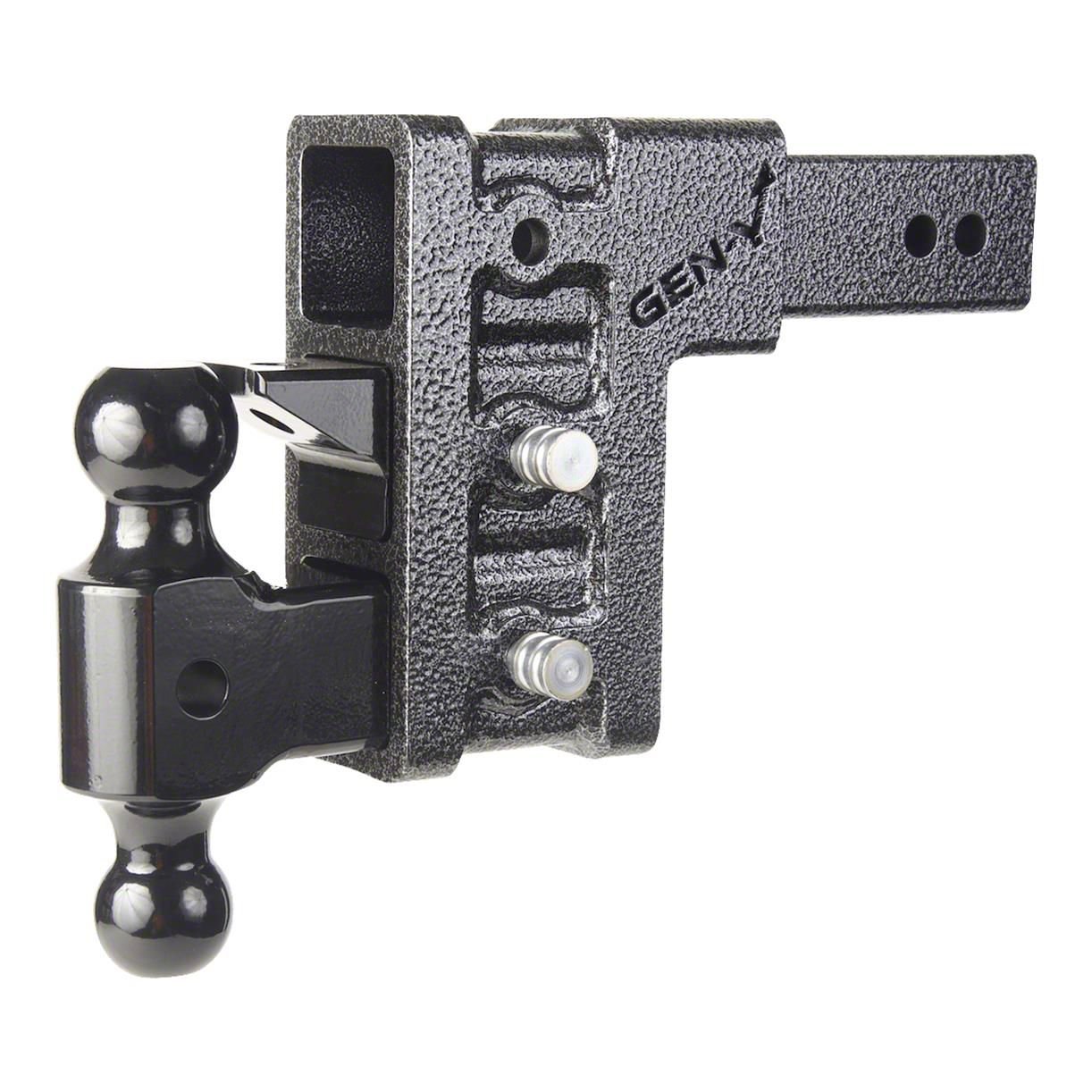 Three-Way Adjustable Design. One of the things that make this Gen-Y Hitch Mega-Duty 5-Inch Drop Hitch stand out is its 3-way adjustable design. This means you can use this hitch with a variety of different trailers. Likewise, this towing hitch can work in the dropped or raised positions, both offering up to 5 inches of distance from the hitch receiver. What’s more, this drop hitch includes a pintle lock, and dual ball mount measuring 2 and 2.312 inches for even more versatility. Also, this hitch will work with most 2-inch receivers.