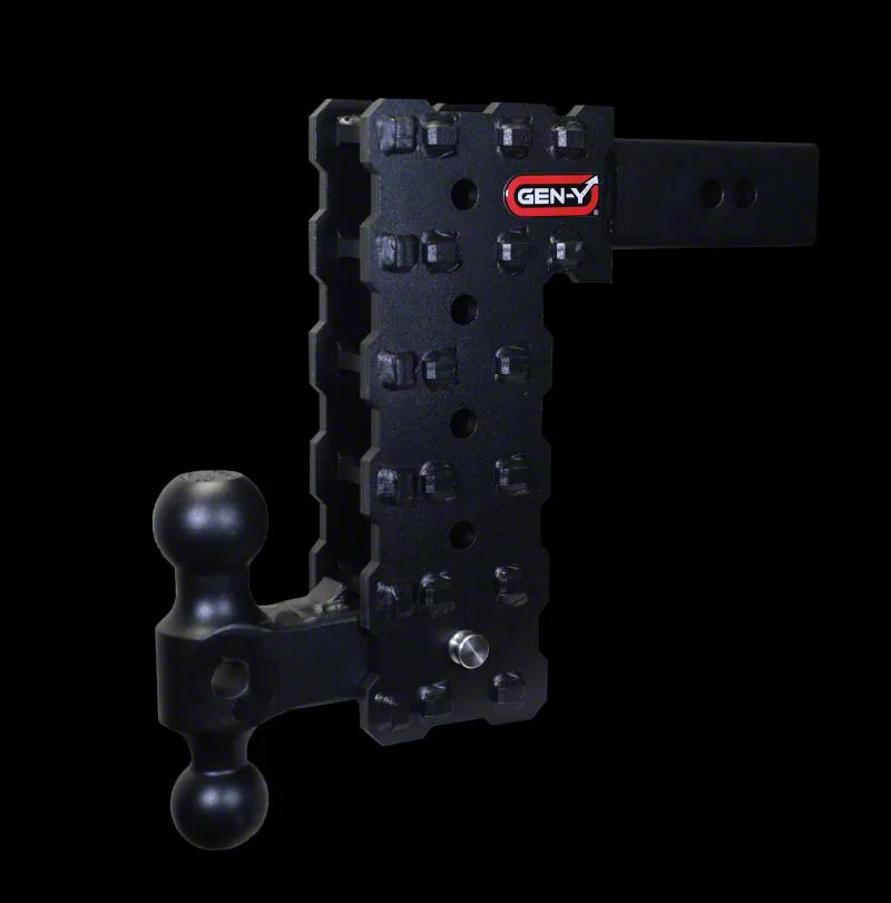 Description. Tough and durable are just two words to describe the new Gen-Y Phantom X Tactical adjustable drop hitches. Rated at 7,000 lb. towing and 700 lb. tongue weight, these hitches are perfect for lighter duty towing with half-ton trucks and SUVs. Gen-Y's innovative stacked tube design allows customers to adjust the ball mount up or down to achieve the right amount of drop every time! The Phantom is not only adjustable, but can also be used in the drop or rise position—making it a truly reliable and versatile hitch. Select the model with options best-suited for your application.