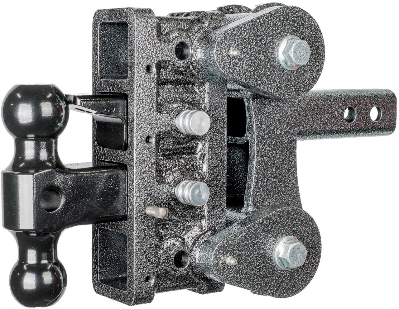 Stable Towing. Maximize your vehicle’s utility by installing the Gen-Y Hitch The Boss 2-Inch Receiver Hitch 10K Adjustable Torsion-Flex Ball Mount 5-Inch Drop Hitch for enhanced towing capabilities. The dual ball mount, pintle lock, and hitch pins are designed for easy adjustability to let you conveniently adjust the height of your towing system. This hitch also features a built-in shock absorption to ensure safer towing even on rugged terrains.