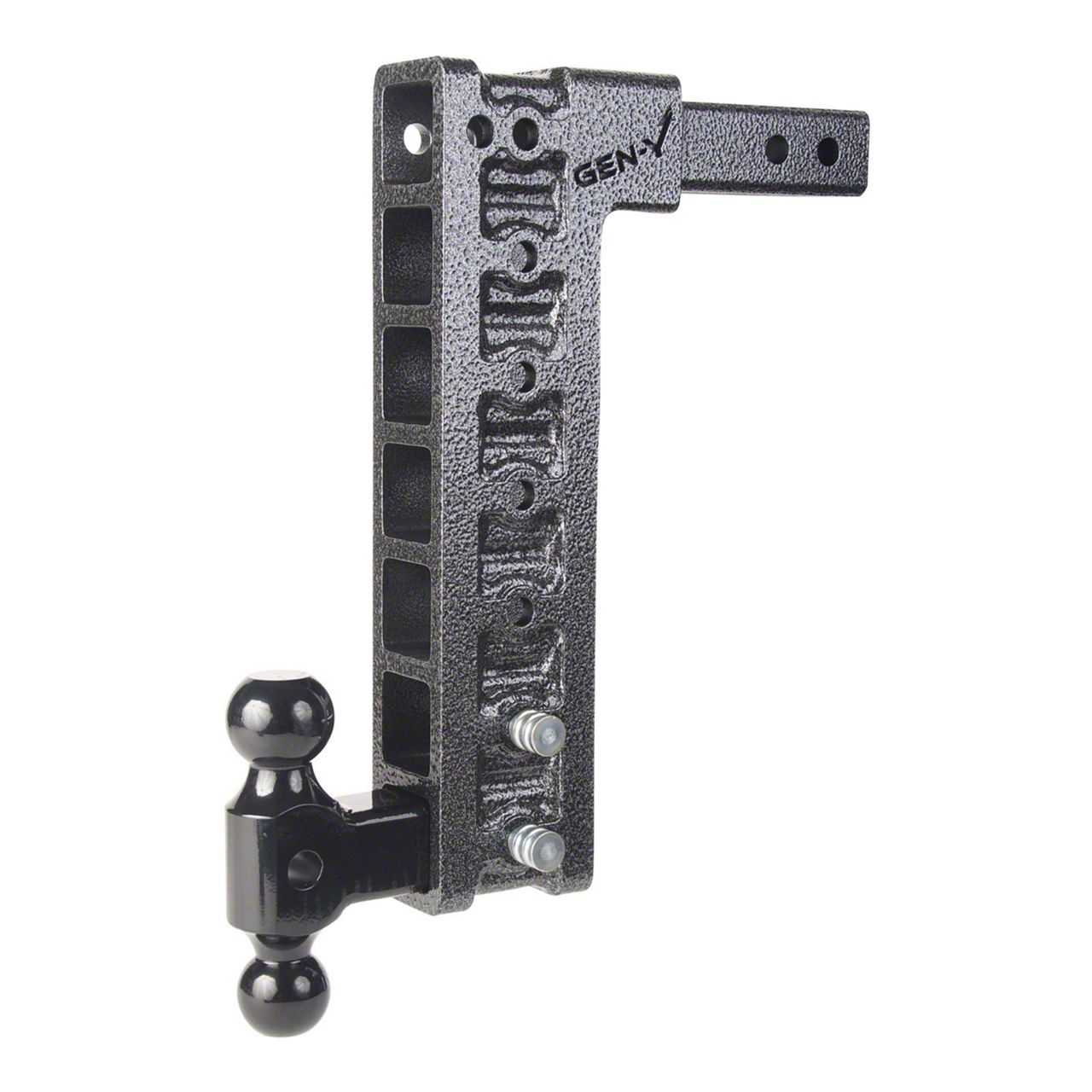 Application. The Gen-Y Hitch Mega-Duty 2-Inch Receiver Hitch 10K Adjustable Ball Mount with 15-Inch Drop is created to universally fit most types of towing off-road vehicles.