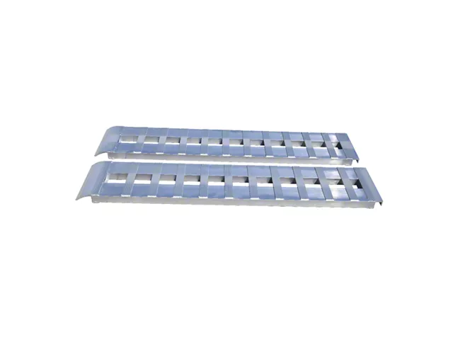 These portable aluminum ramps are a great solution for all of your loading and unloading needs. From flatbed trailers to loading docks, these ramps provide heavy-duty support as well as excellent traction due to their textured cross-patterns. This provides extra support and safety for wet and/or muddy tires.