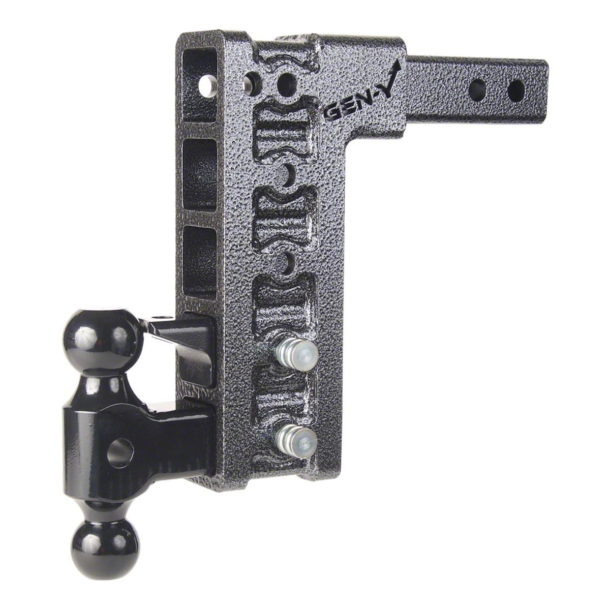 Application. The Gen-Y Hitch Mega-Duty 2-Inch Receiver Hitch 16K Adjustable Ball Mount with Pintle Lock and 10-Inch Drop Hitch designed for universal fitment.