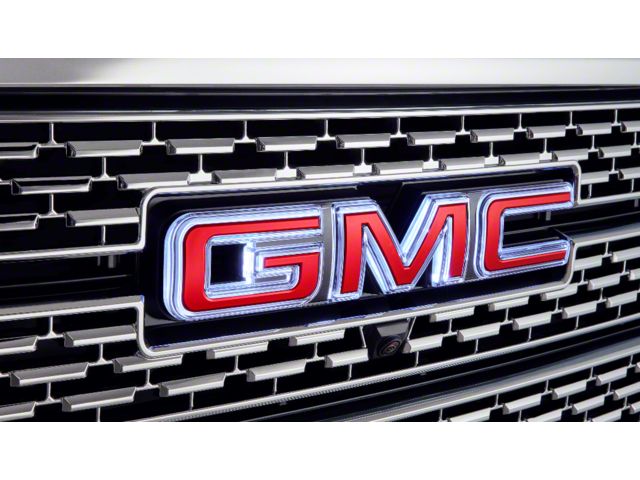 Application. The GM Illuminated Front Grille Emblem; Red fits all 2019-2026 GMC Sierra 1500 models.
