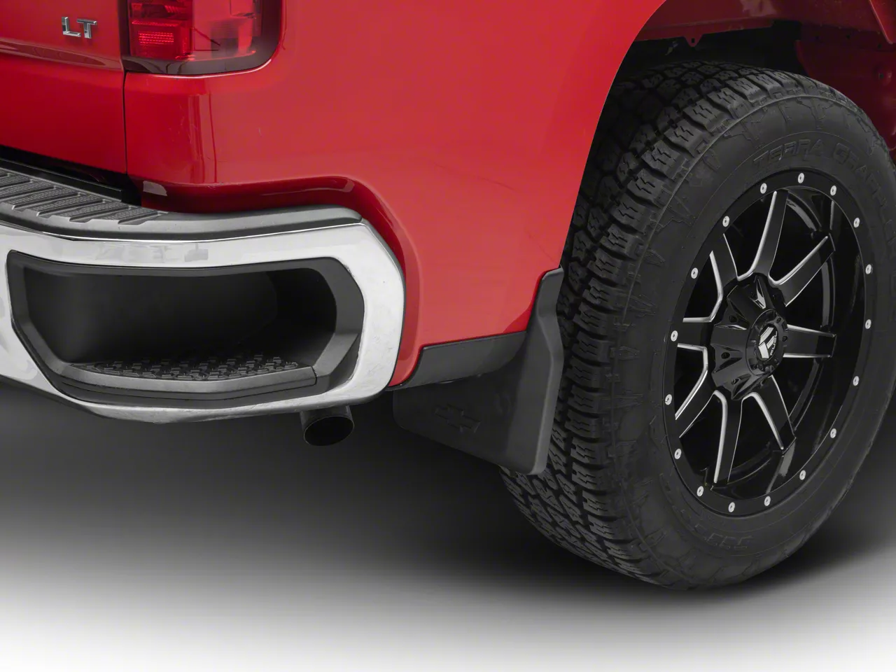 Application. These GM Black Rear Splash Guards with Bowtie Logo fit all 2019-2026 Chevrolet Silverado 1500 models.