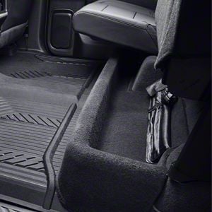 Smart Under-Seat Storage Design. If you’re looking for practical and great-looking under-the-seat storage for your Silverado, then the GM Black Under Seat Storage Organizer is exactly what you need. This under-seat storage bin is designed to follow the contours of your rear seat, spanning its length. When combined with its carpeted look, you get a storage organizer that’s completely concealed when the rear seats are down, keeping it hidden from prying eyes. More importantly, this storage container is large enough for everything from tools to extra clothes and hunting equipment.