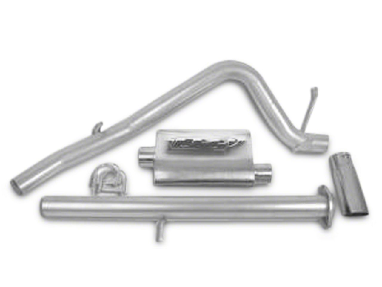 Upgraded Look and Sound. Replacing your OEM exhaust with a CGS Motorsports Aluminized Cat-Back Exhaust can do wonders for the look and sound of your truck. This cat-back exhaust has an eye-catching polished stainless steel tip that will complement your truck's design and give it a subtle new look. The system also features a stainless steel high-flow muffler and a seamless mandrel-bent tube. These parts have less bends and turns that can hamper exhaust flow and dull the sound of the system.