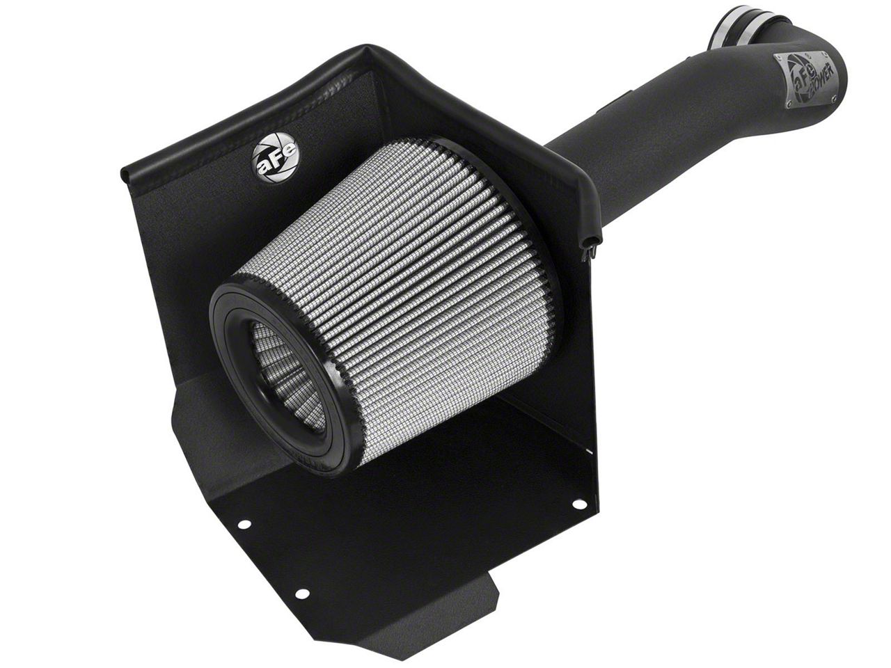 Opening Up the Gates. The most immediate feature of the AFE Magnum Force Stage 2 Pro Dry S Cold Air Intake in Wrinkle Black for 14-17 5.3L Sierra 1500 is the vastly improved air flow. Open up the intake with a 55% Flow Increase, fitted with a thick and weighty 8" Performance Air Filter and a single-piece Powder-Coated 18-Gauge Heat Shield.