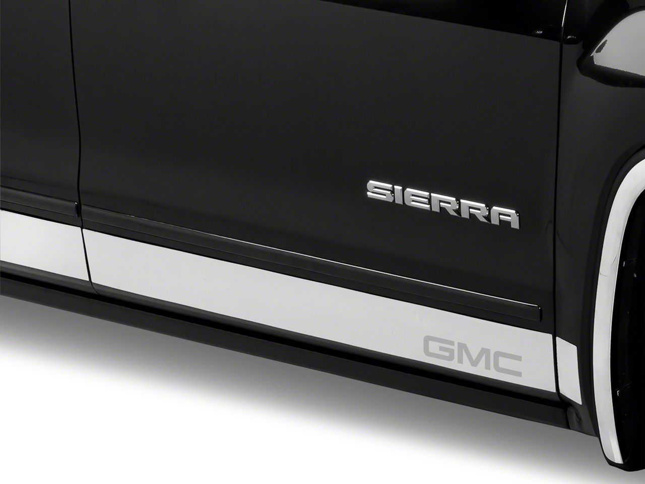 Shield Your Rig From Debris. Even though your rig is made for rough riding down backroads and exploring off-road, it is still susceptible to wear and tear from the debris encountered along the way. These Stainless Steel Rocker Panels (with the GMC logo integrated) offer an extra shield on your rig's sides to protect against such damage.