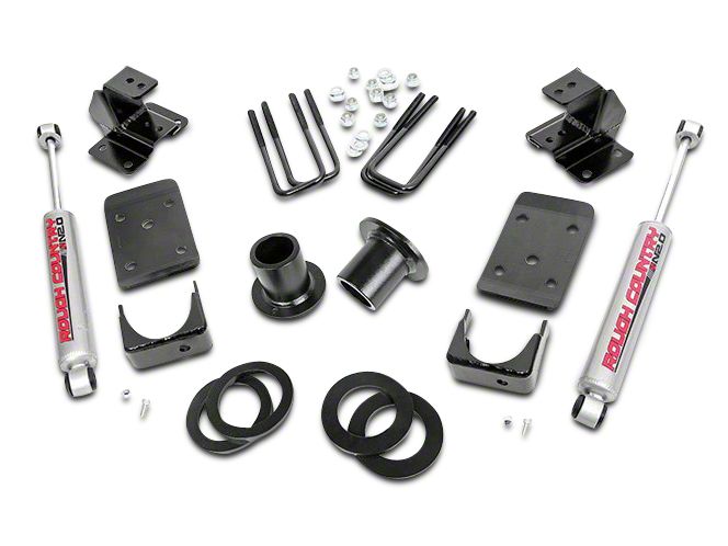 Without Compromise. If you're looking to transform the look and performance of your truck, look no further than a lowering kit from Rough Country. This 1-2"/4" set features N2 shocks and is easier than ever to install, utilizing easy bolt-on installation, and offering a sleek, modern look.