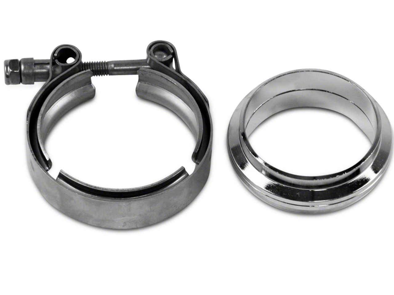 Sturdy Interlocking Flange. There's nothing quite as enjoyable for an F-150 tinkerer than building your own exhaust system that perfectly meets your needs and ideas, and parts like the GMS 2.5-inch Mild Steel Mating Flat Flange w/V-Band Exhaust Clamp exist to help. These interlocking flanges create a 2.5" V-band style connection that is beefy and solid but can be disassembled easily when needed (for further modding, cleaning, repair, etc.). A low profile but hefty and rugged V-band clamp is also included to fit over the mating flanges and hold them even more securely in place. These high quality parts are mild steel while the clamp is stainless to keep it safe from rust, pitting, and corrosion.