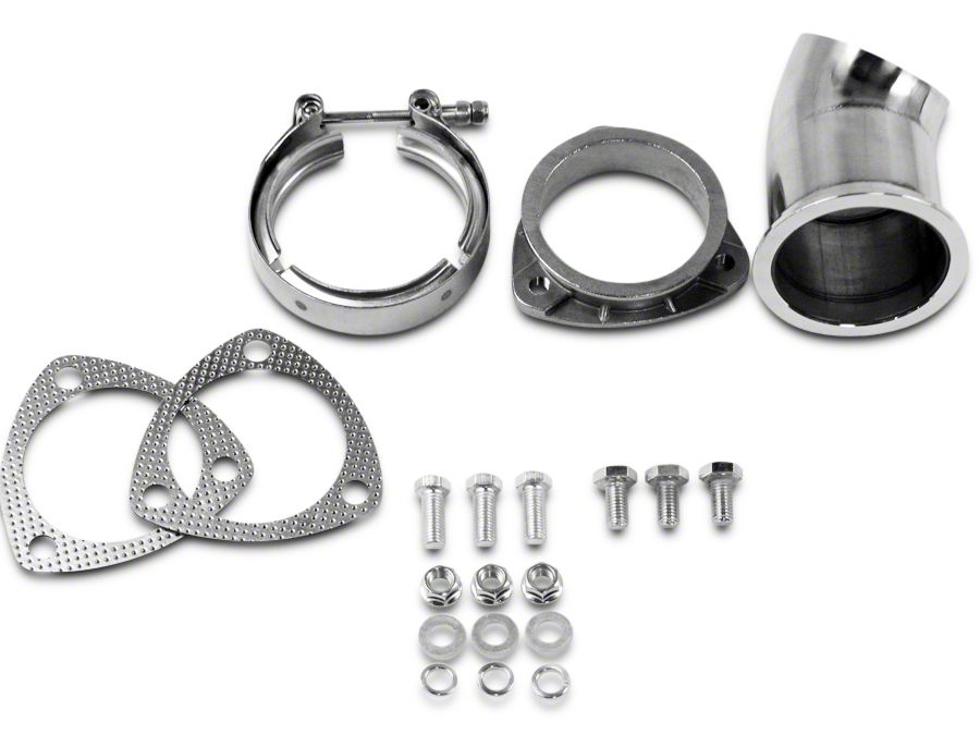 Bolt-On Installation. This 3-inch adjustable turn down is easy to install. Simply weld it on with the mounting hardware that is included.