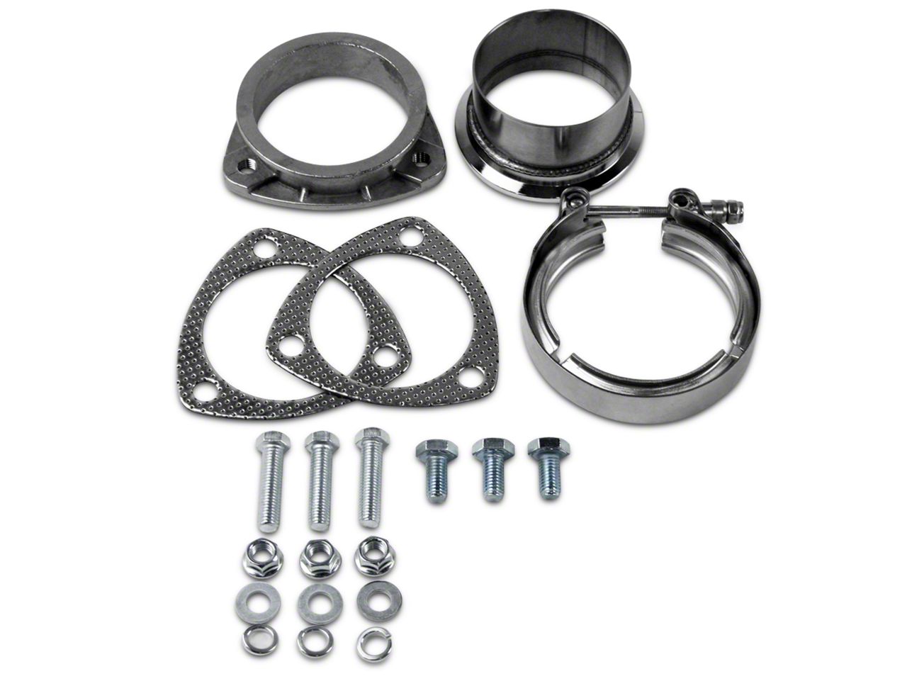 Useful for Building. Do-it-yourself exhaust systems for your 1997-2026 Ford F-150, fun and satisfying as they are, work best with high quality fittings and materials, such as the GMS 3-inch V-Band to Straight Connection from Granatelli. Made for 3-inch tubing, this connection set enables modifying a 3-bolt connection into a much more versatile V-band flange with an abutment for welding, ensuring a beefy, solid join. The system lets you rotate the pipe after welding to achieve the exact alignment you need to make your DIY exhaust project work. This kit comes complete with gaskets for a tight seal, plus a stainless steel V-band clamp that fits the connection snugly.