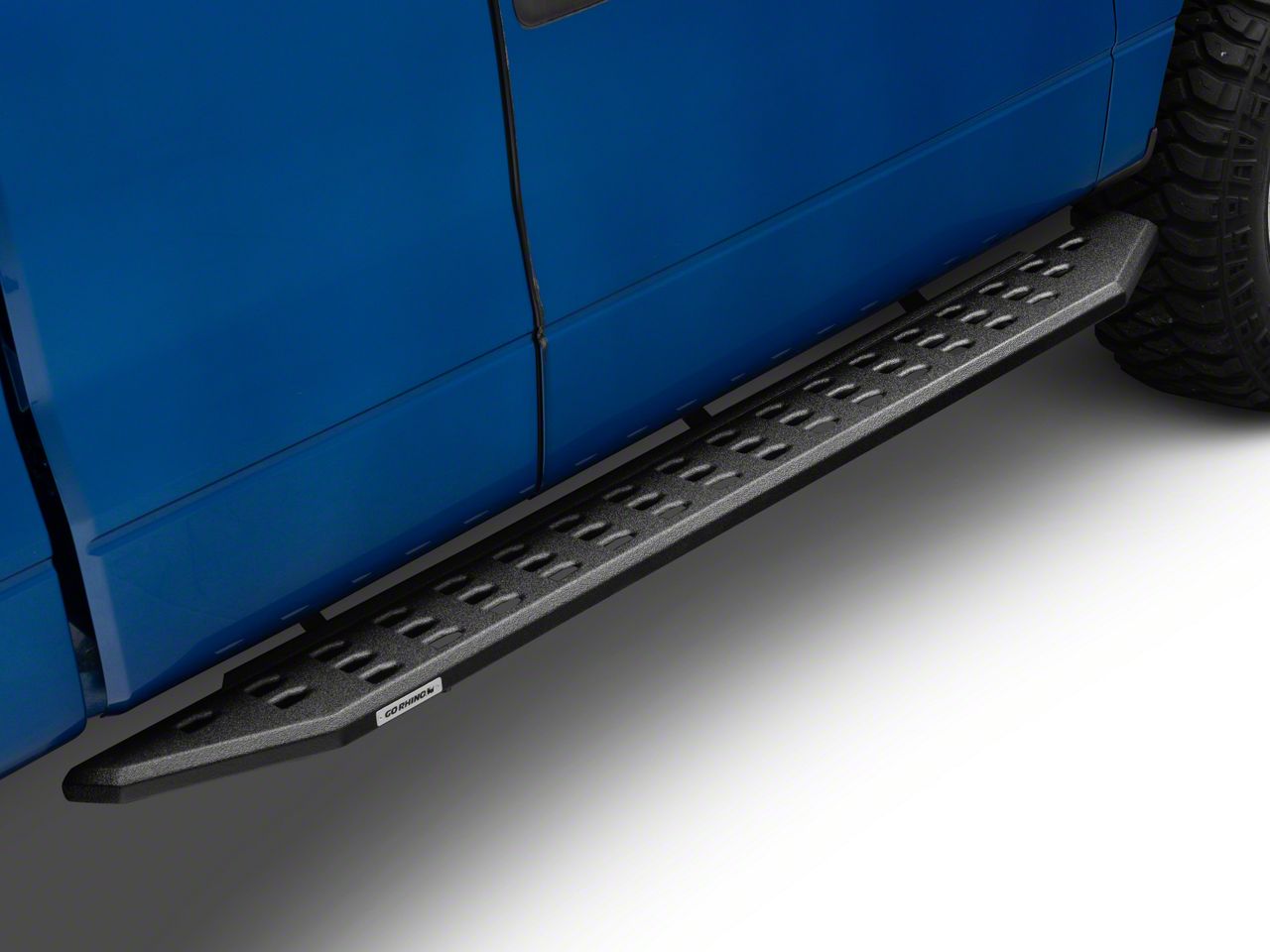 Step On Up. These RB20 Running Boards are 7.5-inches wide at the front and taper to 6.5-inches at the rear to provide a stable step for easy entry in and out of your 2004-2014 Ford F-150 SuperCab. The cab length, punched hole tread design provides excellent footing in all weather conditions. As an added bonus, these Cab Length Running Boards will also help to protect your lower rocker panels from damage caused by trail obstacles and road debris.