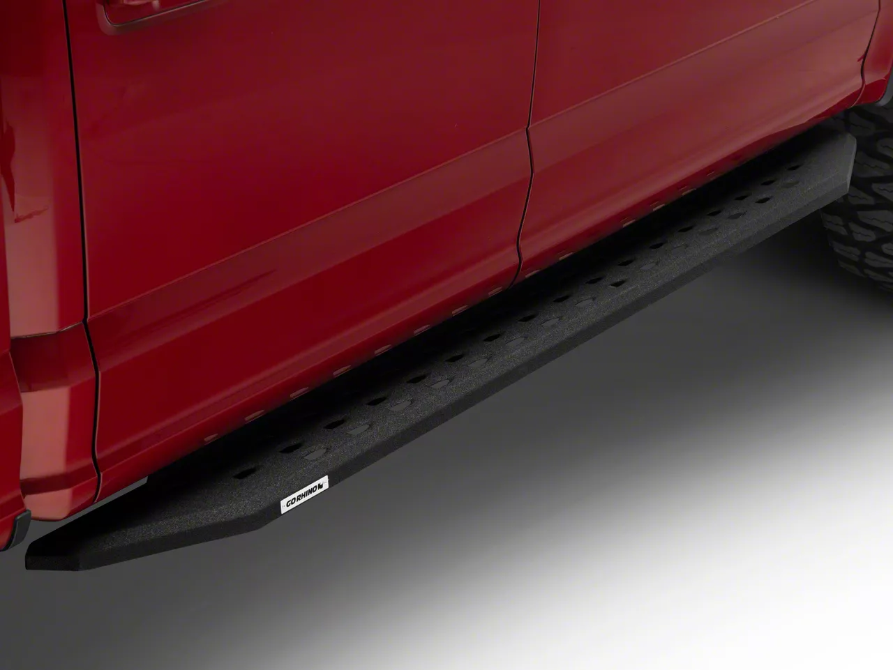 Step On Up. These RB20 Running Boards are 7.5-inches wide at the front and taper to 6.5-inches at the rear to provide a stable step for easy entry in and out of your 2015-2026 Ford F-150 SuperCrew. The cab length, punched hole tread design provides excellent footing in all weather conditions. As an added bonus, these Cab Length Running Boards will also help to protect your lower rocker panels from damage caused by trail obstacles and road debris.