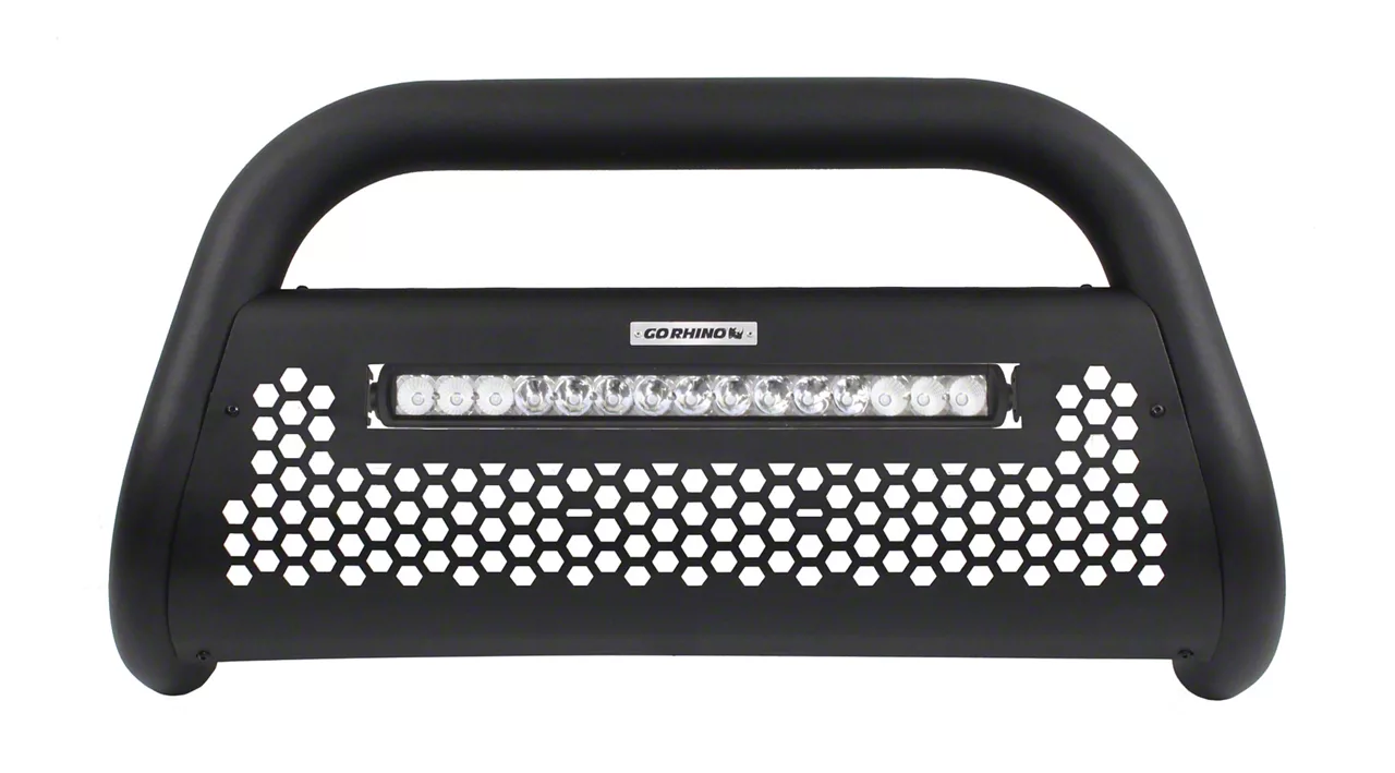 LED Light Bar Included. The manufacturer had the foresight to design its RC2 LR Bull Bar with a 20-inch Go Rhino Single-Row LED Light Bar included. This powerful LED Light Bar not only looks great, but will also ensure that you have plenty of light for your night-time trail runs.