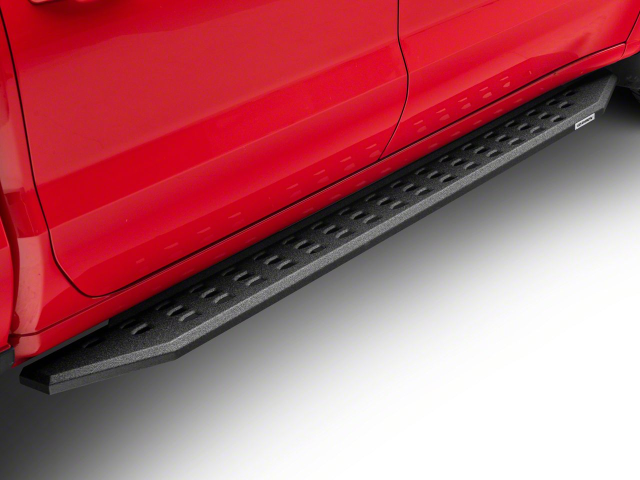 Step On Up. These RB20 Running Boards are 7.5-inches wide at the front and taper to 6.5-inches at the rear to provide a stable step for easy entry in and out of your 2019-2026 Chevrolet Silverado 1500 Crew Cab. The cab length, punched hole tread design provides excellent footing in all weather conditions. As an added bonus, these Cab Length Running Boards will also help to protect your lower rocker panels from damage caused by trail obstacles and road debris.