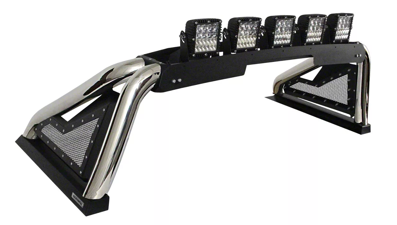 Application. This Sport Bar 2.0 Roll Bar with Power Actuated Retractable Light Mount; Polished is designed to fit 2014-2018 Chevrolet Silverado 1500 models.