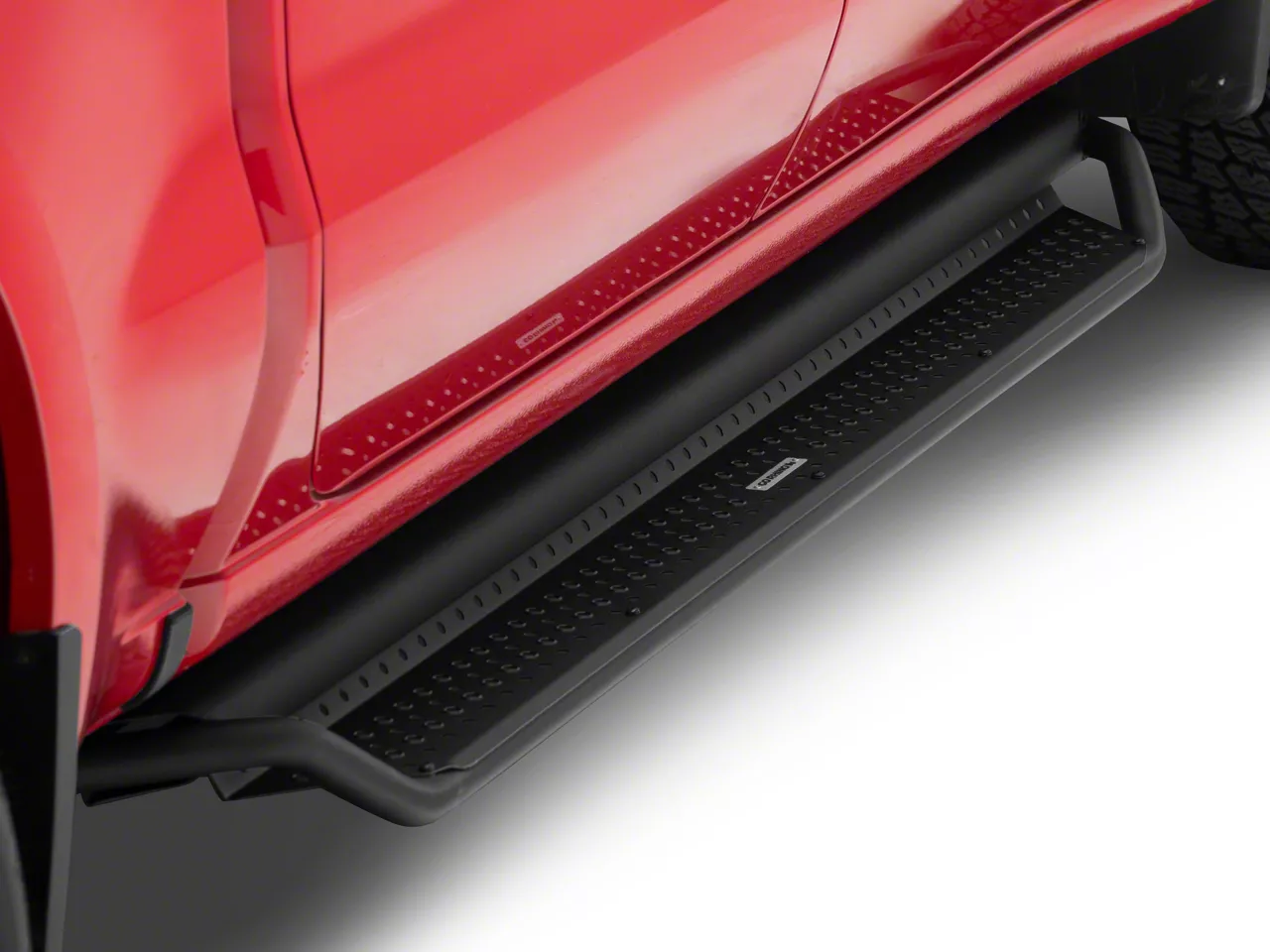 Function and Protection. Add a convenient step for easy entry in and out of your 2019-2026 Chevrolet Silverado 1500 Crew Cab, by installing a set of Dominator D1 Cab Length Drop Side Step Bars. The cab length punched hole style step design provides excellent footing in all weather conditions. As an added bonus, these Cab Length Step Bars will also help to protect your lower rocker panels from trail obstacles and road debris.