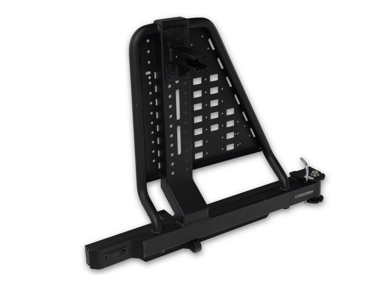 Convenient Spare Tire Accessibility. The Go Rhino Tire Carrier is designed for trucks, SUVs, and Jeeps, providing a stylish and functional solution to easily access your spare tire. With its hitch-mounted swing-away design, it attaches to 2-inch receiver hitches and is fully adjustable to accommodate tires up to 37 inches and 200 pounds.