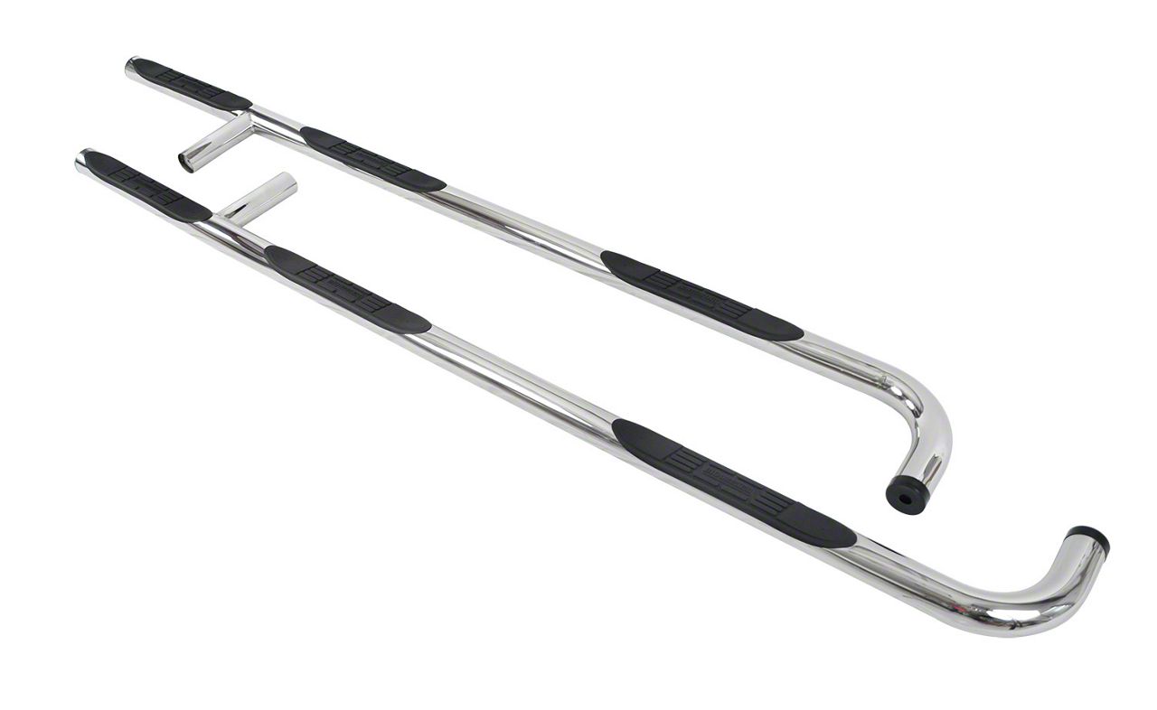 One-piece wheel-to-wheel sidesteps. Custom designed for each application. 3rd step pad offers easy access to bed or tool box. Non-slip step pads allow easier, safer entry and exit. Smooth 90deg front bend and 30deg rear bend offers a unique look. Polished stainless steel with a limited lifetime warranty.