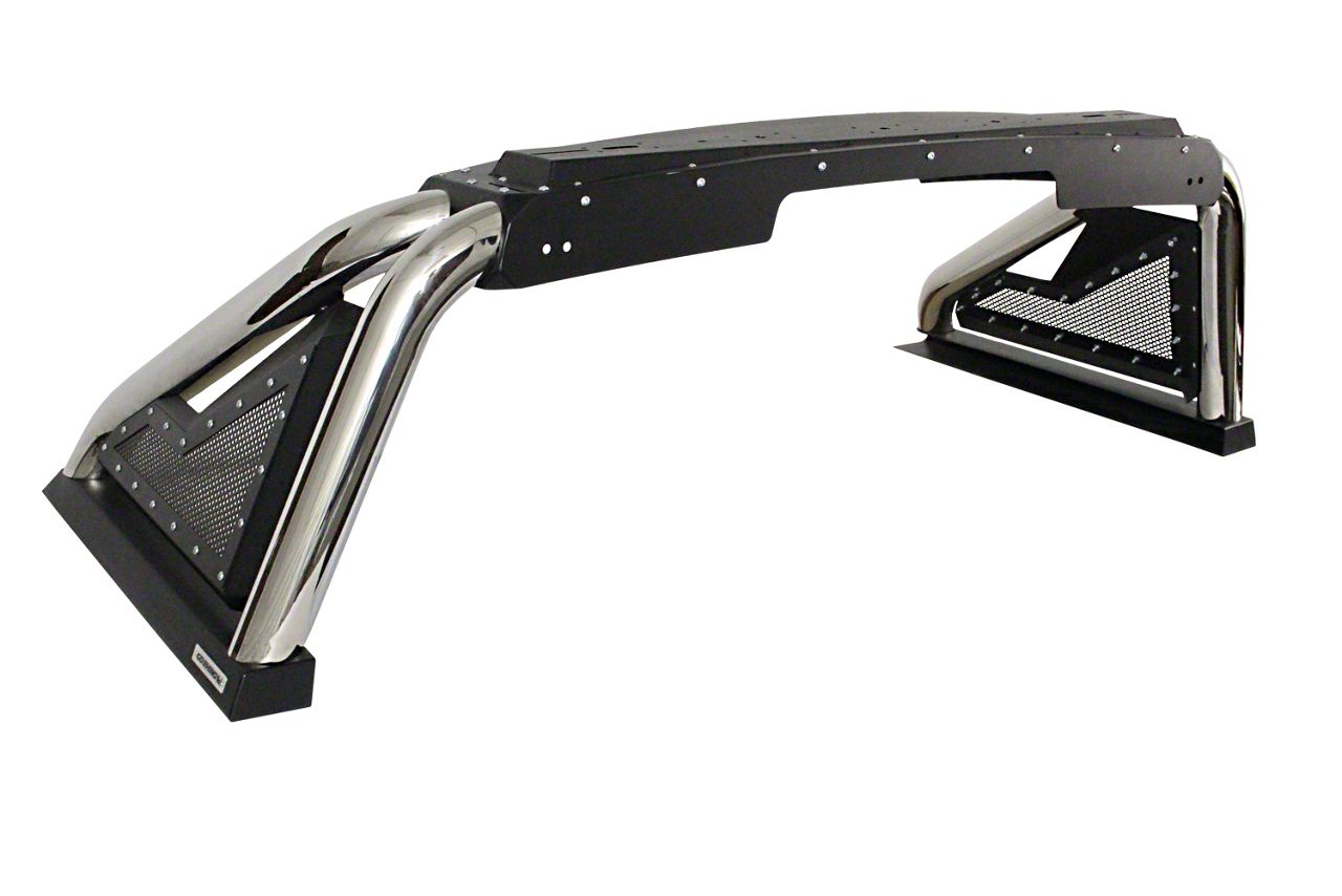 Aggressive-Looking Truck Bed Protection. Protect your passengers and yourself in the event of a rollover with this Polished Sport Bar 2.0 Roll Bar. This roll bar mounts on your truck right behind your cab, providing added support in the event of a rollover. This is particularly helpful if you regularly take your truck off-roading through particularly uneven terrains. Additionally, this rollover bar features a classy design that matches well with your truck’s bold appeal.