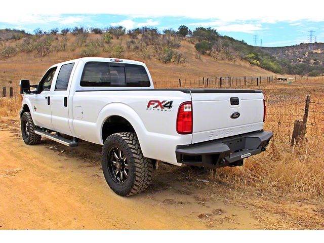 Rear Protection. To protect your Ford Super Duty's rear end, gear it up with this textured black BR20 Rear Bumper. Featuring a 1-piece mild steel build, this rear bumper is sure to protect your vehicle’s rear from impacts and road debris.