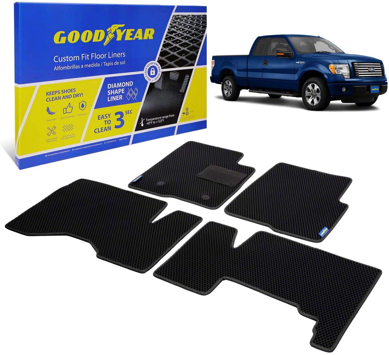 Application. These Goodyear Custom Fit Front and Rear Floor Liners; Black fits all 2009-2014 F-150 SuperCab models.