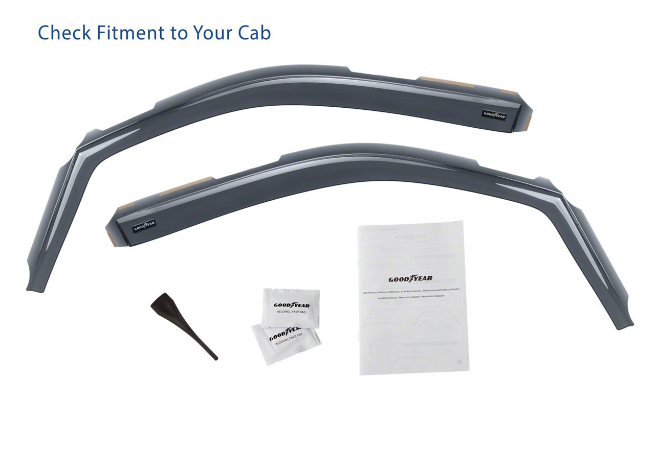 Installation. Putting these Goodyear Car Accessories Shatterproof in-Channel Window Deflectors on your F-150 Regular Cab is easy and requires no drilling.