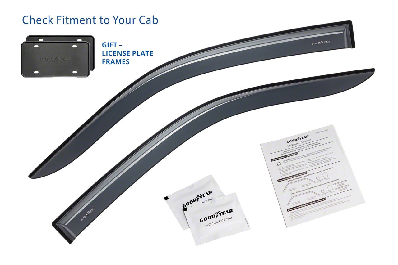 Application. These Goodyear Shatterproof Tape-On Window Deflectors fit 2004-2014 Ford F-150 Regular Cab models.