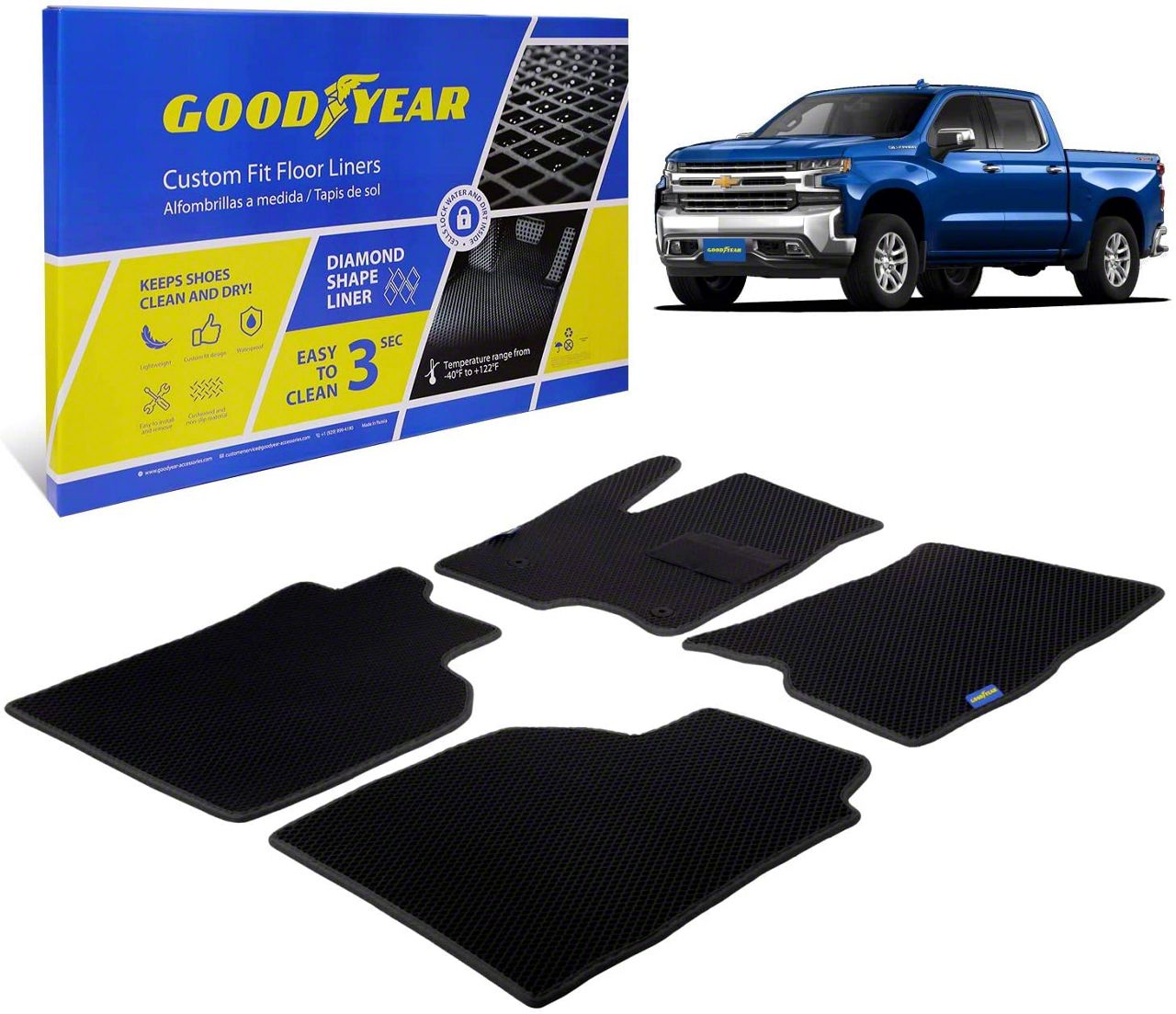 Application. These Goodyear Custom Fit Front and Rear Floor Liners; Black fits all 2019-2026 Sierra 1500 Crew Cab models.