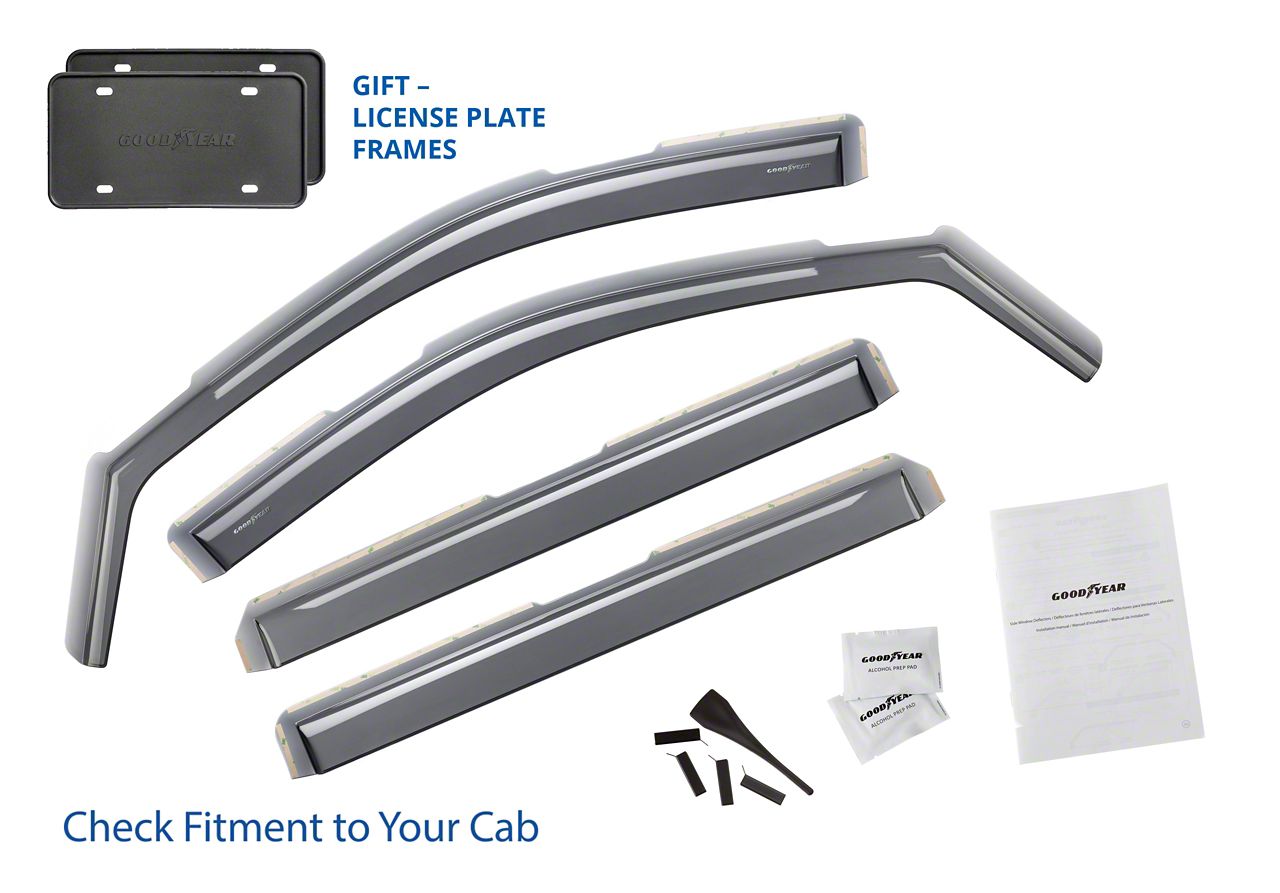 Application. The Goodyear Shatterproof in-Channel Window Deflectors fit all 2019 to 2026 Chevrolet Silverado 1500 Crew Cab models.
