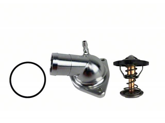 Machined for Precision, Built for Heat. Made from billet aluminum and anodized for strength, the housing features exact hose fitment and sensor compatibility. It installs easily with factory components and keeps your cooling system reliable under hard acceleration.